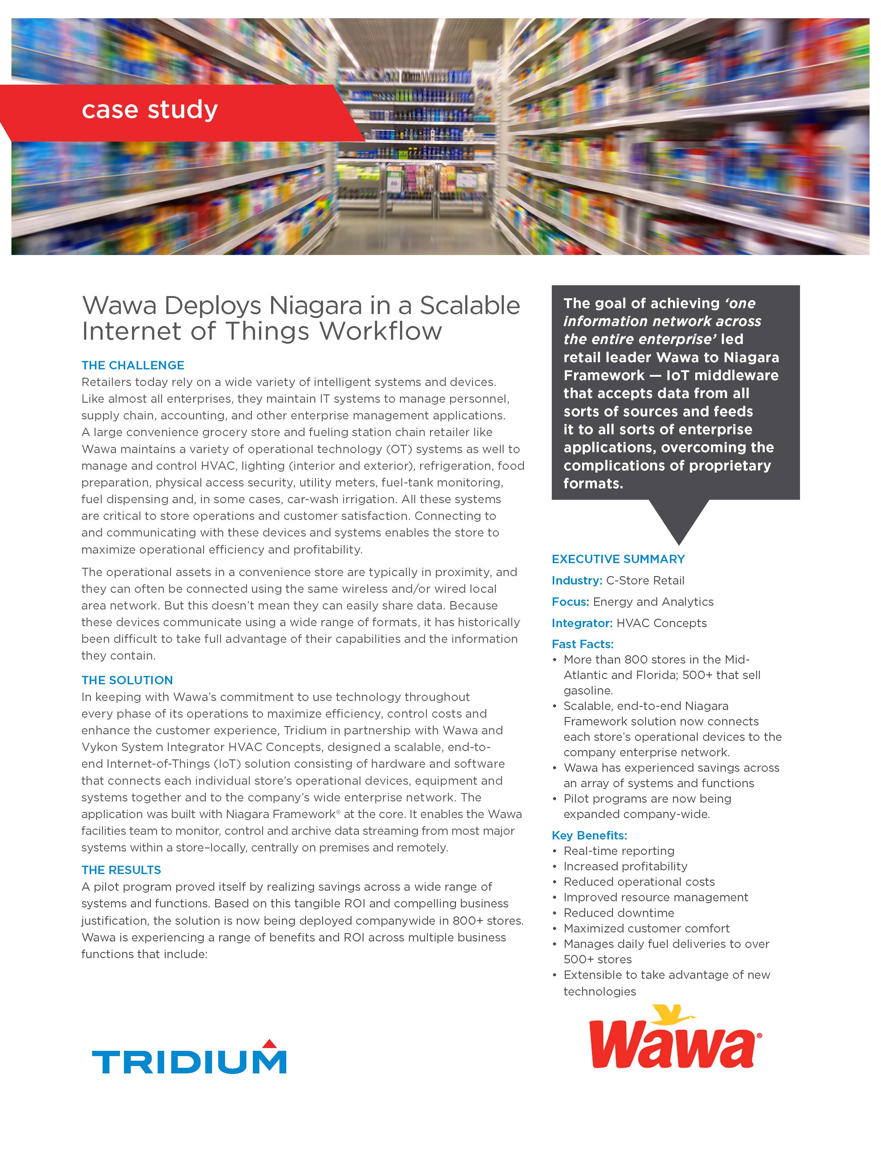 Retailers today rely on a wide variety of intelligent systems and devices. Not only are there specialized retail IT systems to manage personnel, supply chain, accounting, and other enterprise management applications, there are also OT - operational technologies - unique to retail. Attracting and accommodating shoppers requires attention to HVAC, lighting (interior and exterior), refrigeration, food preparation and other equipment. Then retailers have special concerns when it comes to physical access security, plumbing systems, and energy metering. The complexity of managing all these systems compounds when the goal is to manage across a network of retail outlets that are located across a city or even spread from coast to coast. A Niagara Framework-based facility management platform can provide a unified view into store operations so that retailers can maximize operational efficiency and profitability. Niagara Systems Integrators have deployed scalable, end-to-end Internet-of-Things (IoT) solutions for a number of big-brand retail networks. Read more about our products and find some retail use cases below.